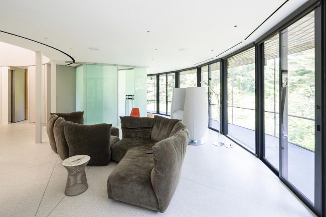Ngôi nhà được trang bị nội thất hiện đại, như ghế của Phillipe Starck và Marcel Wanders. Trong phòng ngủ của trẻ em, một chiếc giường tròn được gắn vào dây thừng và treo trên trần nhà.