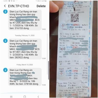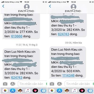 Chị Lê Ngọc Thanh, ngụ P.An Bình, Q.Ninh Kiều, TP.Cần Thơ, trình bày, nhà chị chỉ có 2 vợ chồng và 1 con nhỏ gần 3 tuổi. Hằng ngày chồng chị đi và về nhà 2 lần trưa – tối, còn chị ở nhà trông con. Ngoài ra vợ chồng chị cũng có 5 phòng trọ cho sinh viên thuê, nhưng do tình hình dịch bệnh, sinh viên về quê đã hết. Vậy mà tiền điện tháng 4 lại tăng một cách khó hiểu.