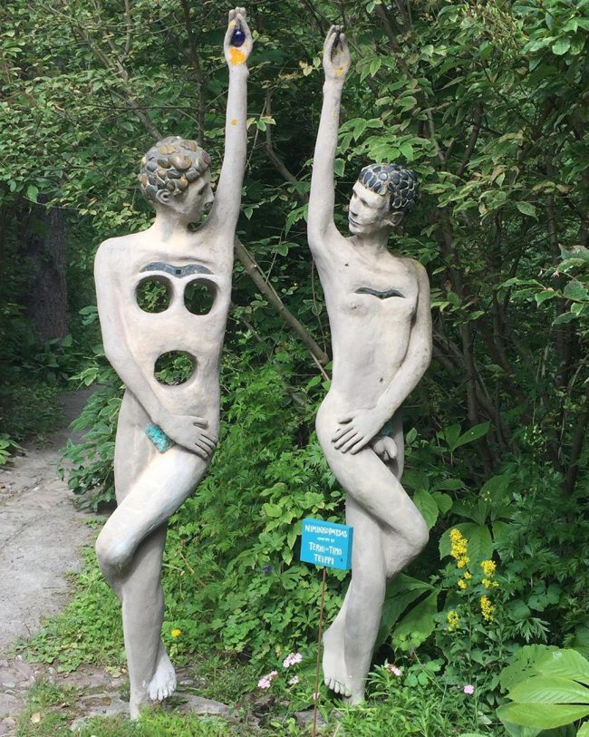 Phần lớn là tượng hình người đã phủ rêu xanh. Họ là những nữ tu, người đàn ông mặc trang phục truyền thống Phần Lan, trẻ em và phụ nữ trong hoạt động thường nhật. Một số tác phẩm điêu khắc mang tinh thần lạc quan, thể hiện mong ước và khát vọng. Trong khi những bức tượng khác tạo cảm giác vô định, từ yếu đuối đến hung hăng. Ảnh: Adveliina, mvsj.
