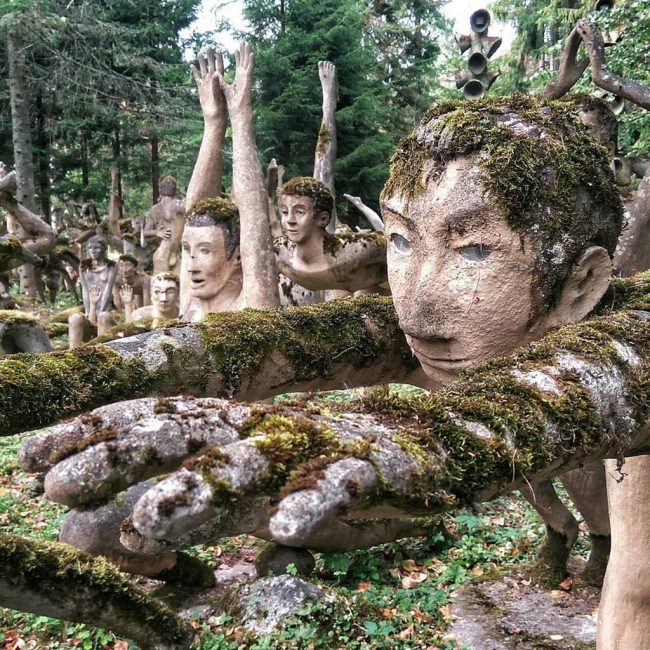 Như để tăng thêm vẻ đáng sợ, u ám, nghệ sĩ còn gắn loa phát ra những âm thanh lầm bầm khó hiểu bên trong một số bức tượng. Công viên điêu khắc của Veijo Ronkkonen mở cửa tự do, điều quan trọng là bạn có đủ can đảm để viếng thăm hay không. Ảnh: Adveliina, kseniyasilver11.