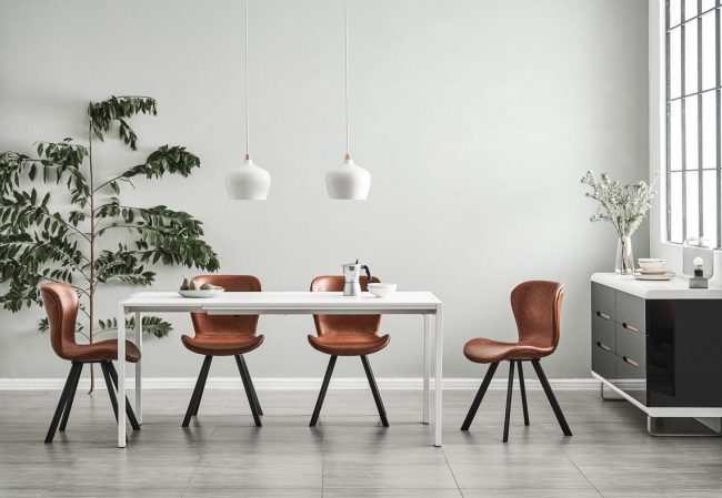 Cùng với thiết kế tối giản của bàn ăn Bristol là đường cong quyến rũ và gam màu nâu sẫm, chững chạc của chiếc ghế Batilda. Đây là một đề xuất kết hợp vừa chuẩn mực, vừa táo bạo của AConcept, dễ dàng ứng dụng trong không gian sống của các gia chủ cá tính.