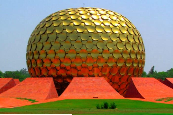 Ngôi đền lớn có tên Matrimandir được xem là biểu tượng của thành phố Auroville. Mái vòm của đền được phủ đầy các đĩa vàng giúp phản chiếu ánh sáng mặt trời.