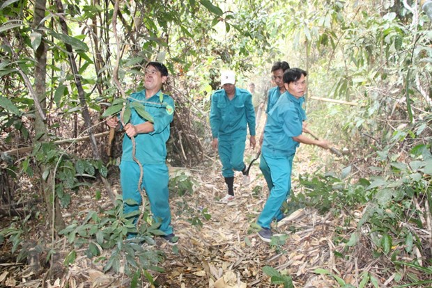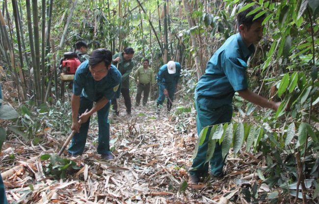 Nhiều cánh rừng có các lối mòn, đường rất hẹp, cây cối, dây gai hai bên. Do đó, lực lượng giữ rừng phải dùng dao rựa phát dọn thường xuyên.
