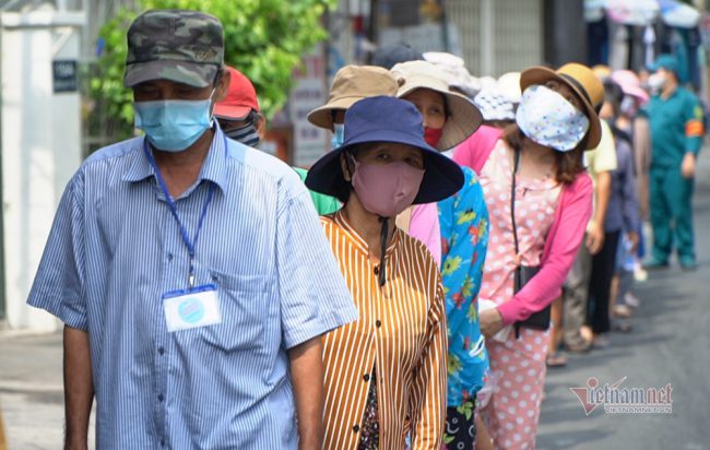 Hàng trăm người vô gia cư, khuyết tật, nuôi bệnh, bán vé số… xếp hàng dài trên đường Nguyễn Văn Lượng (quận Bình Thạnh, TP.HCM) để được nhận một phần cơm do quán Nụ Cười 6 phát miễn phí.
