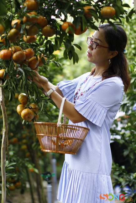 Vườn quýt gây ấn tượng với những cây quýt lá xanh ngăn ngắt, những trái quýt xanh hiếm hoi biết phận lấp ló nhường màu chín đỏ hồng rực cả cây, trĩu nặng cả cành là đà thấp xuống đất, vướng víu lối đi như mời gọi khách đi ngang hay treo tòng teng trên ngọn cao như những sợi dây đen trang trí. Nhất là những cây quýt lão niên, cổ thụ, thân khẳng khiu già nua thật đối lập với những cành sum suê trái chín.