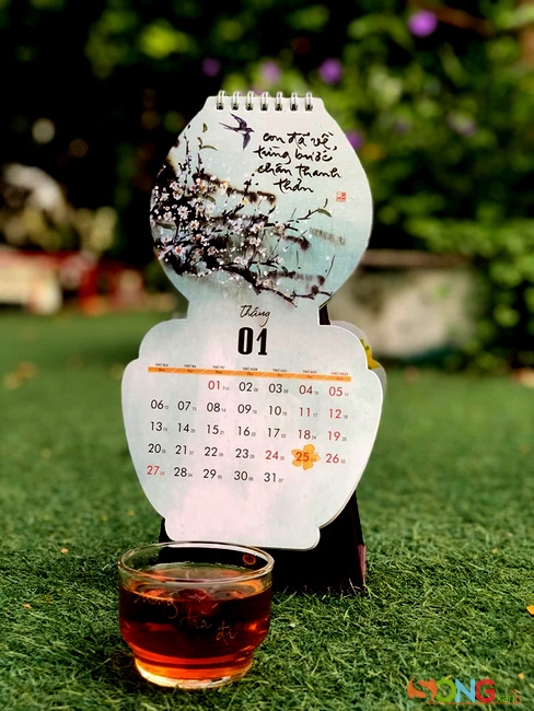 Các tờ lịch được thể hiện khá lạ so với giao diện lịch thông thường. Nó có hình dạng cây đèn – biểu tượng trao truyền, với ý nghĩa “nhất đăng truyền chiếu bách thiên đăng”, một cây đèn truyền xuống sẽ trở thành trăm cây đèn khác, cùng thắp ánh sáng của Pháp, ánh sáng của thư thái, an nhiên… soi chiếu cho mọi người. Và không thể thiếu trong bộ lịch là những câu thư pháp của thiền sư Thích Nhất Hạnh như “Con biết ba còn đó con rất biết ơn”, “Có bùn mới có sen”, “Con về nương tựa đất mẹ”… giúp mọi người có thêm cơ hội thực tập, nuôi dưỡng sự tiếp nối trong mình, trong gia đình và với những người yêu thương xung quanh. Có những trang lịch, những người thực hiện tin rằng nếu nhìn thấy, bạn như muốn sống chậm lại hơn để trân trọng bản thân, yêu thương gia đình và sống hài hòa với thiên nhiên, cây cỏ.